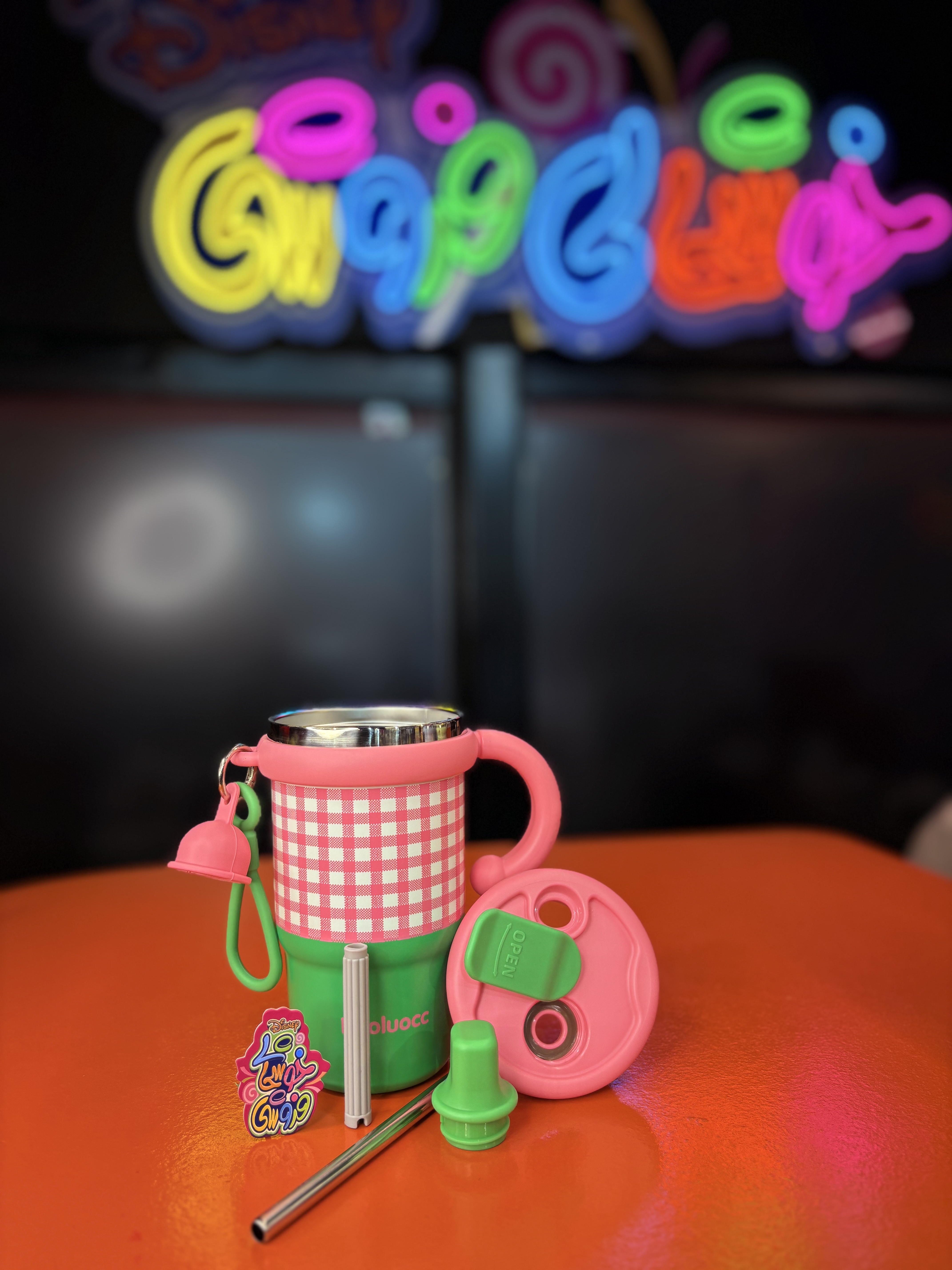 تراول ماگ دسته دار چهار خونه صورتی